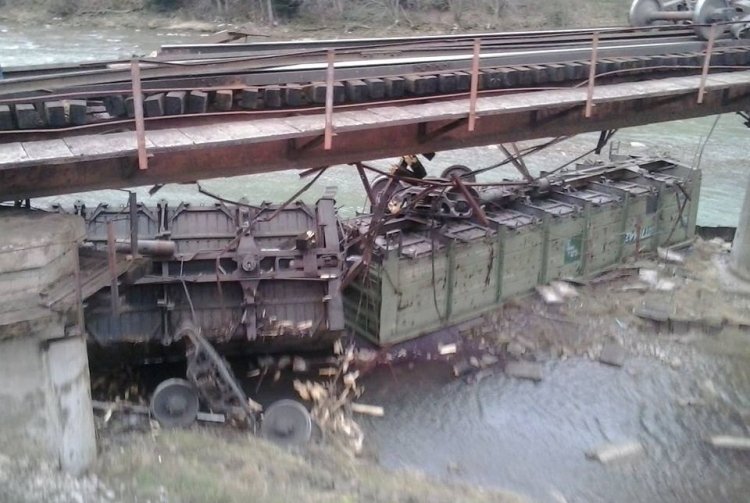 В Саратовской области в результате обрушения моста упал в реку товарный поезд